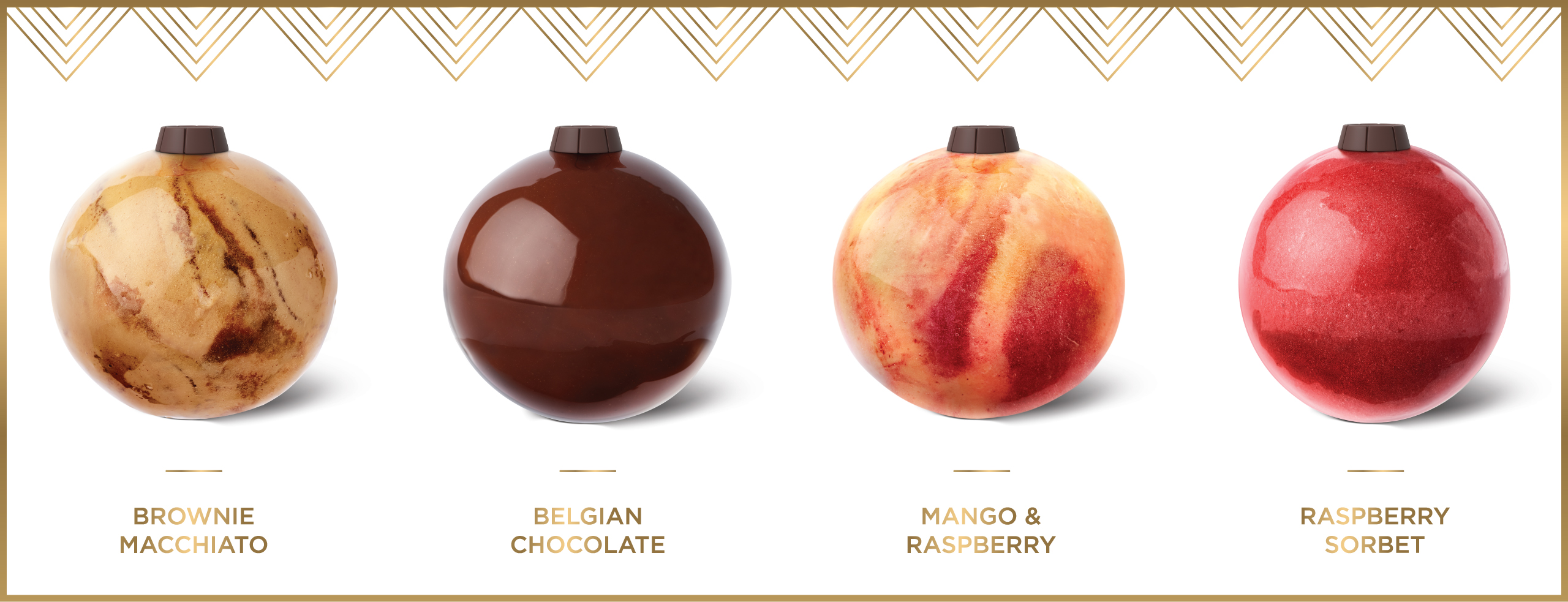 Mathieu Vienne, Häagen-Dazs executive chef, created the recipes, which feature four festive flavors: Belgian Chocolate, Mango & Raspberry, Raspberry Sorbet, and Brownie Macchiato – Häagen-Dazs’ new coffee-shop inspired ice cream.